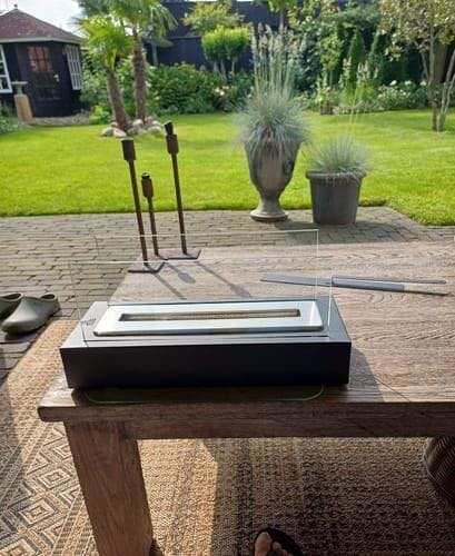 Really nice table hard, easy to use, best quality. After filling with bioethanol it can burn for up to 2 hours. Communication with this company is also excellent, lots of information about ordering and home delivery.