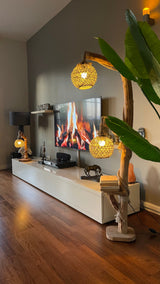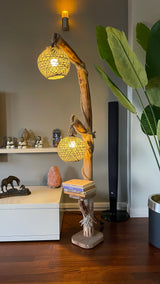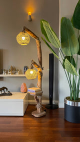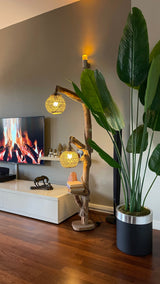 This floor lamp not only lights up your room but adds a contemporary flair with its unique double-pine design, creating a captivating ambiance.
